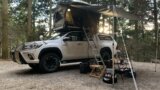 テントはイージーキャンパーのレボリューション、電動式のルーフテントです。